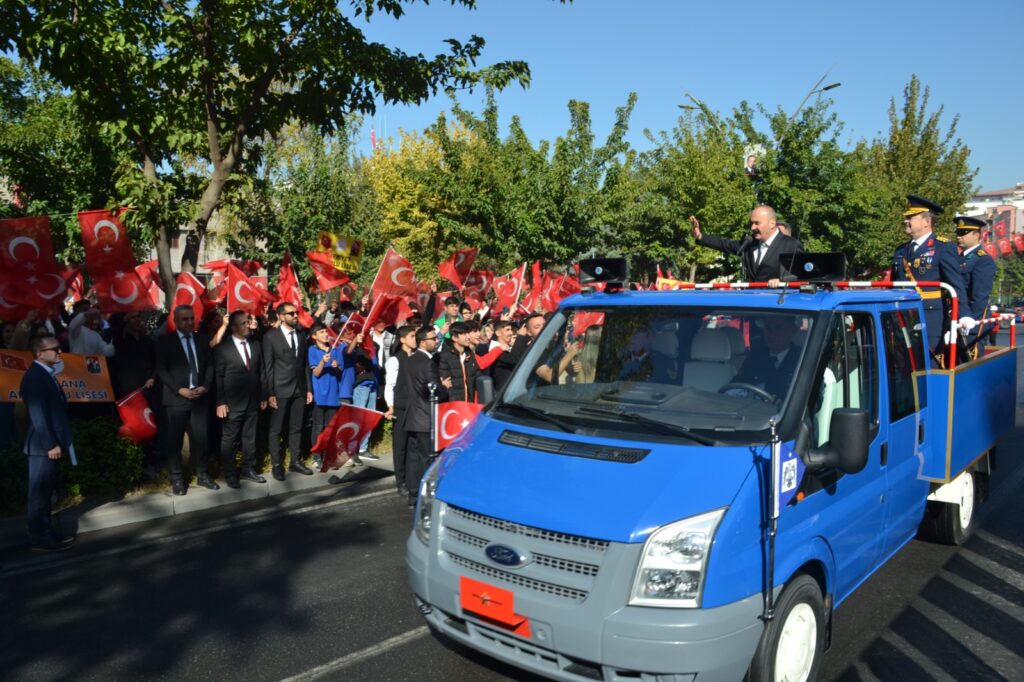 Vali Ekrem Canalp’in katılımıyla gerçekleşen kutlamalara Garnizon Komutanı Hava Tuğgeneral Mehmet Ali Koç, Cumhuriyet Başsavcısı Murat Şahingöz, askeri erkân, kurum, kuruluş ve STK temsilcileri, siyasi parti temsilcileri, şehit ve gazi yakınları, öğretmen, öğrenci ve çok sayıda vatandaş katıldı. Vali Canalp ve Garnizon Komutanı Hava Tuğgeneral Mehmet Ali Koç, tören aracıyla halkı ve askeri birlikleri selamlayıp Cumhuriyet Bayramını kutladı. Günün anlam ve önemini belirten şiirlerin okunmasının ardından konuşan Vali Canalp, “Bugün hep birlikte Cumhuriyetimizin 101. kuruluş yıldönümüne kavuşmanın gurur ve heyecanını yaşıyoruz. Milletimiz ve devletimiz sonsuza kadar yaşasın. Cumhuriyet Bayramımız hepimize kutlu olsun” dedi. Tören, öğrenciler tarafından günün anlam ve önemini belirten şiirlerin okunması, folklor gösterisi, zeybek gösterisi, karate, wushu ve judo gösterisinin ardından ödül ve geçit töreni ile sona erdi.