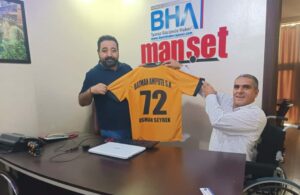 Batman Ampute Spor Kulübü Başkanı Vedat Çoban, BHA Medya Grubu Yönetim Kurulu Başkanı Osman Seyrek’i yeni gazete ofisinde ziyaret etti. Ziyaret kapsamında, üzerinde “Osman SEYREK” yazılı ve 72 numaralı özel forma Seyrek’e hediye edildi. Formayı memnuniyetle kabul eden usta gazeteci Osman Seyrek, Batman Ampute Futbol Takımı’na ve Başkan Vedat Çoban’a teşekkür ederek takıma başarılar diledi. Ziyarette konuşan Başkan Vedat Çoban, Osman Seyrek’e olan takdirini şu sözlerle dile getirdi: “Osman Seyrek sadece Batman’ın değil, Türkiye’nin en iyi yazar ve gazetecilerindendir. Çok yönlü bir isim; kaliteli bir yazar, gazeteci, spor adamı, kültür insanı, aktivist, çevreci ve sosyal sorumluluk sahibi bir başkandır. Batman, kendisiyle ne kadar gurur duysa azdır.” Ziyaret, spor ve medya dünyası arasında kurulan güçlü iş birliği mesajlarıyla sona erdi.