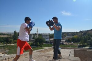 Batman Gençlik ve Spor İl Müdürlüğü’ne bağlı boks antrenörü İbrahim Halil Güzel, öğrencilerini tarihi Malabadi Köprüsü’nün tam ortasında ringe çıkardı. Bin yıllık taşların üzerinde gerçekleşen bu sıra dışı antrenman, sadece fiziksel bir mücadele değil; aynı zamanda korkularla yüzleşmenin ve özgüvenin simgesi oldu. Antrenör Güzel, sporcularına dengede kalmayı öğretmek ve yükseklik korkularını yenmeleri için tarihi köprüde boks yaptırdı. Seyircilere açık şekilde gerçekleşen mini müsabakalar, hem izleyenlerin hem de sporcuların unutamayacağı bir deneyime dönüştü.