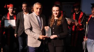 Batman Deneyap Teknoloji Atölyesi’nde eğitim gören 33 öğrenci, Ahmet Güneştekin Konferans Salonu’nda düzenlenen mezuniyet töreninde büyük bir heyecan yaşadı. Yoğun katılımla gerçekleşen programda öğrenciler, diplomalarını Batman Gençlik ve Spor İl Müdürü Mehmet Şafi Özperk ve İl Milli Eğitim Müdürü Yaşar Ciğer’in elinden aldı. Tören boyunca duygusal anlar yaşanırken, öğrenciler sahneye çıkarak üç yıl boyunca edindikleri bilgi, beceri ve deneyimleri paylaştı. Gençlerin teknolojiye olan ilgisi ve başarı hikâyeleri, salondaki katılımcılardan büyük alkış aldı.