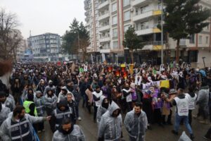 Yürüyüş, Atatürk Parkı karşısındaki Worldmar önünde toplanan kitleyle başladı. DBP Eş Genel Başkanı Keskin Bayındır, DEM Parti ve DBP’nin il, ilçe ve belde yöneticileri ile çok sayıda vatandaşın katıldığı yürüyüş, geniş güvenlik önlemleri altında sürdü. Kadınların taşıdığı dövizlerde, örgülü saçlarıyla betimlenen genç kadın figürleri ve Rojava’da yaşamını yitiren kadınları simgeleyen görseller dikkat çekti. Yürüyüş, 8 Mart Kadın Parkı’nda son buldu.