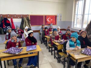 Gönüllü öğrencilerin büyük bir özveriyle ördüğü atkı ve bereler, Duygulu Ortaokulu öğrencilerine hediye edilerek minik yürekler ısıtıldı. Toplumsal dayanışmayı güçlendirmeyi ve gençler arasında gönüllülük bilincini artırmayı amaçlayan proje çerçevesinde Batı Raman Kız Öğrenci Yurdu ve Süveybe Ana Kız Yurdunda kalan öğrenciler, haftalar boyunca emek vererek atkı ve bereler hazırladı. Rengârenk ipliklerle örülen kışlık aksesuarlar, düzenlenen etkinlik programı kapsamında Duygulu Ortaokulu’nda öğrencilere dağıtıldı.