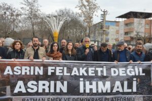Batman Emek ve Demokrasi Platformu, 6 Şubat 2023 depremlerinin yıl dönümünde yaptığı açıklamada, yaşanan yıkımın kader ya da doğal afet olarak nitelendirilemeyeceğini belirterek, “Bu yıkım rantı, denetimsizliği ve cezasızlığı esas alan bir düzenin sonucudur” dedi. Platform adına açıklamayı yapan Dönem Sözcüsü Cihan Tüzün, depremlerde on binlerce insanın hayatını kaybettiğini, milyonlarca yurttaşın ise barınma, çalışma ve yaşam hakkından mahrum kaldığını ifade etti. Tüzün, “İnsanlar yalnızca evlerini değil; işlerini, yakınlarını, sosyal çevrelerini ve geleceklerini kaybetti” dedi.